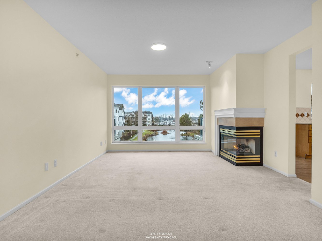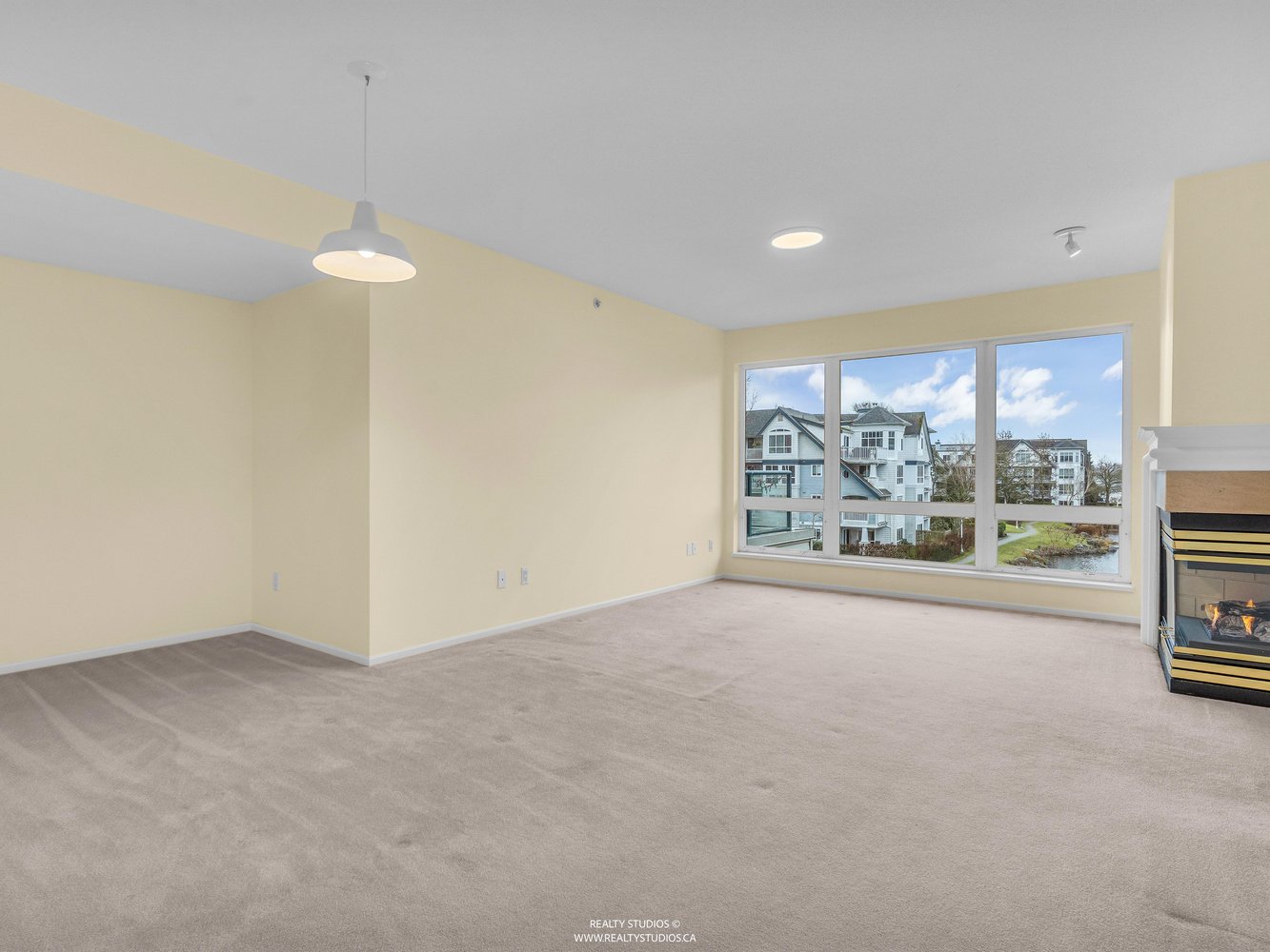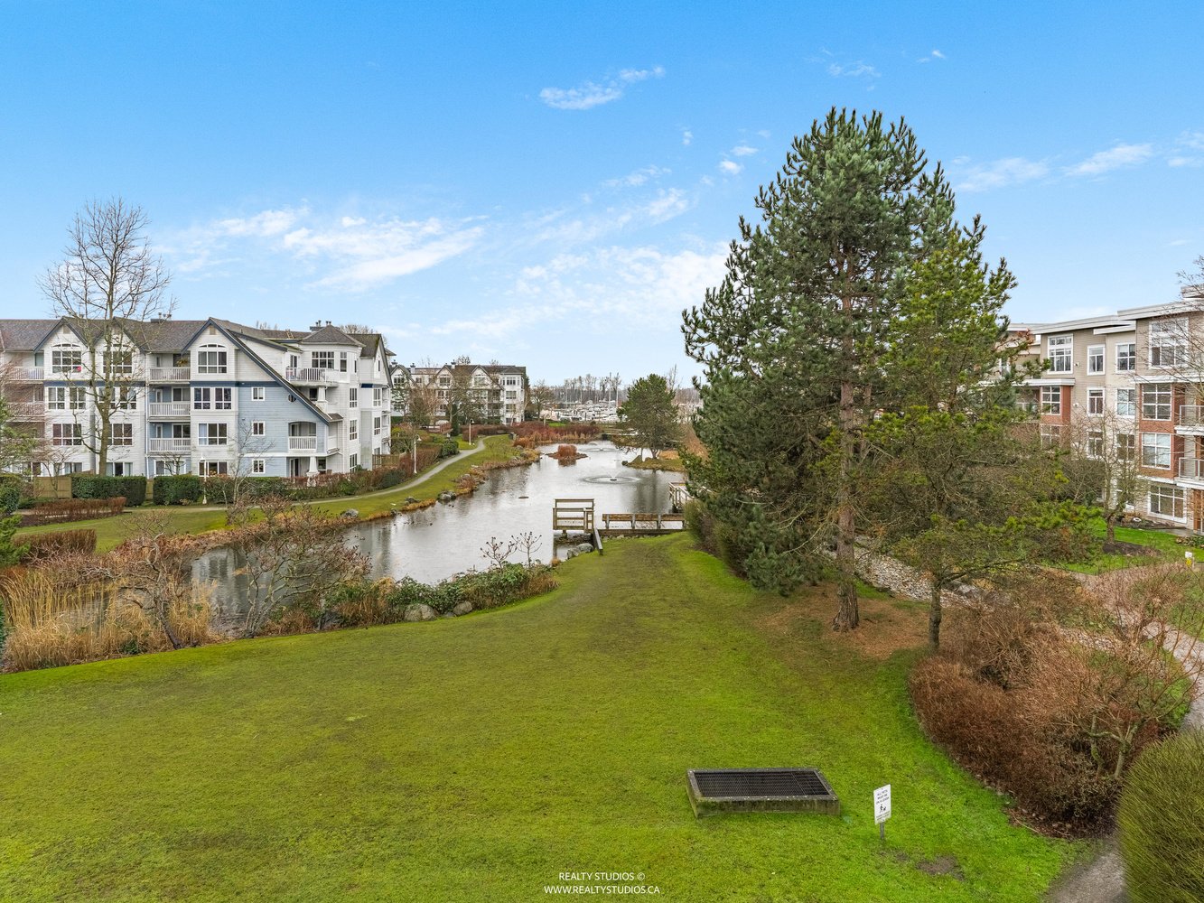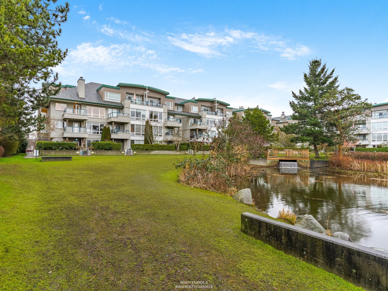 Spacious CORNER UNIT with the BEST VIEWS IN STEVESTON -- overlooking a serene pond, landscaped courtyard, and the Fraser River from EVERY WINDOW! With room for house-sized furniture, this unit is in pristine original condition, offering modernized lighting and a fresh coat of paint. Snuggle up next to the cozy gas fireplace, and enjoy the convenience of in-floor radiant heat -- both included in the strata fees. Unit offers easy elevator and stairwell access, in this well-managed, rainscreened building with guest suites, a new roof, updated common areas, and modernized elevators. Steps to the boardwalk, dyke trail, shops, cafés (including Diplomat Bakery), and restaurants in Steveston Village. Two parking stalls included!